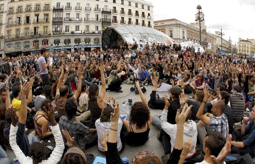 «Ich habe das erste Mal das Gefühl, wirklich etwas verändern zu können», sagt Ismael, ein 24-jähriger Student, der mit seinen Mitstreitern seit Dienstag den Platz an der Puerta del Sol (Sonnenpforte) im Zentrum der spanischen Hauptstadt besetzt hält.