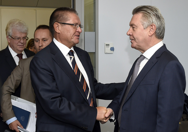 Russland hatte zuvor erneut seine Bedenken zum Freihandelsabkommen der EU mit der Ukraine vorgetragen. EU-Handelskommissar Karel De Gucht traf sich am Freitag in Brüssel mit dem russischen Wirtschaftsminister Alexej Uljukajew und dem ukrainischen Außenminister Pawel Klimkin. Ziel war es, den Streit um den Handelspakt zu entschärfen.