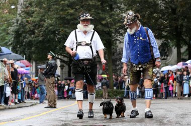 Vom Wetter her stand die Wiesn bei ihrem Auftakt unter keinem guten Stern. Hatte es an den Vortagen noch strahlendes Spätsommer-Wetter gegeben, setzte am Vormittag in München Dauerregen ein. Doch auch vom tristen Herbstwetter ließen sich die Wiesn-Fans nicht aufhalten. So verfolgten zahlreiche Zuschauer den traditionellen Einzug der Oktoberfest-Wirte - in Tracht und mit Regenschirm oder Ganzkörperplastikhülle.