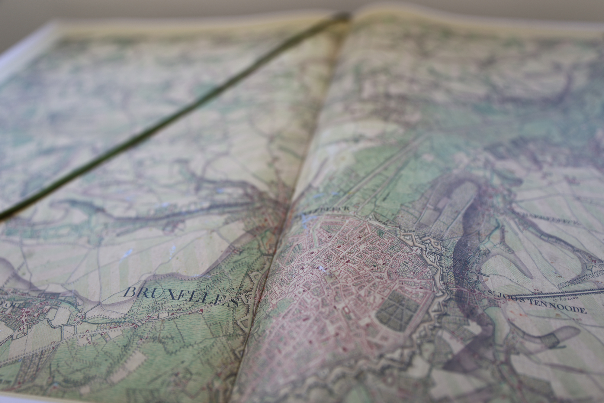 Mit dem Gemälde setzt sich die Künstlerin mit dem Atlas von Ferraris auseinander. Diese erste kartographische Aufzeichnung der Österreichischen Niederlande wurde in den 1770er Jahren erstellt und ist für Jana Rusch eine immerwährende Quelle der Inspiration. "Das ausgestellte Exemplar im Museum ist im Besitz von Jana Rusch und darf gerne durchgeblättert werden", sagt Museumsleiterin Catherine Weisshaupt.
