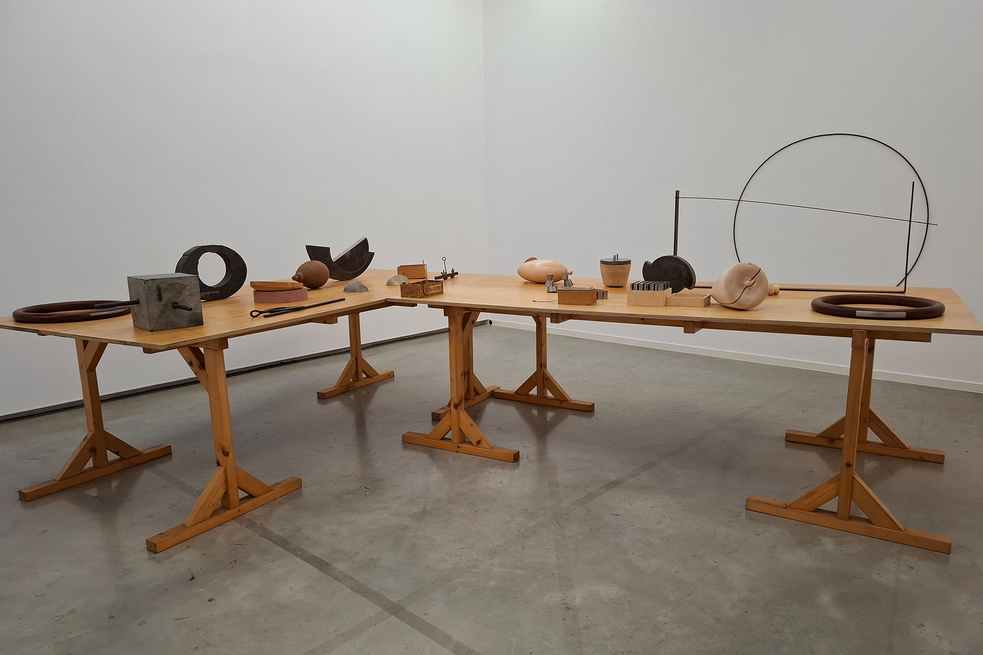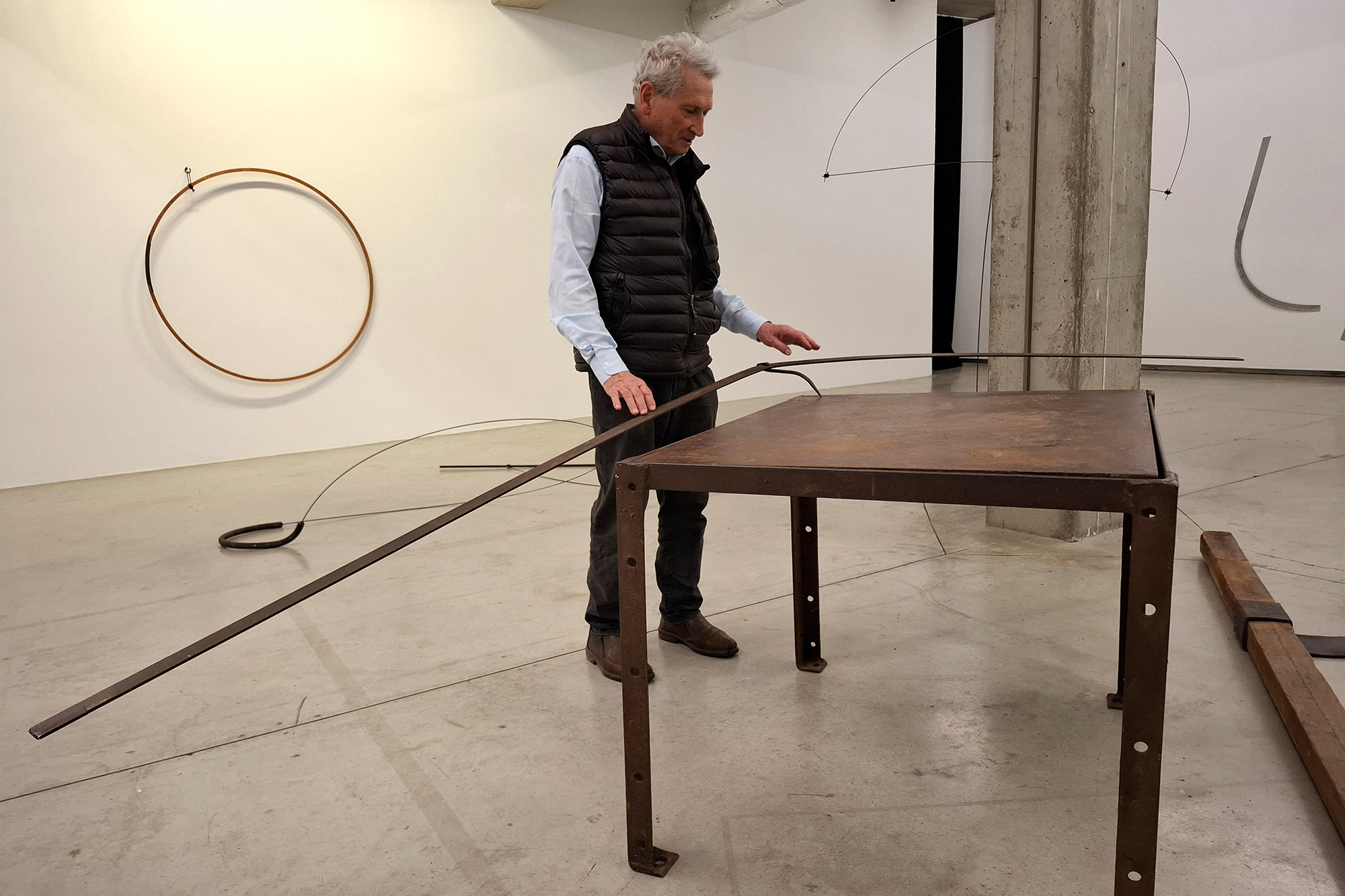 Blechformen an der Wand, gestapelte Ringe auf dem Boden, eine waagerecht hängende Stange. Auf den ersten Blick wirkt vieles im Ikob eher unspektakulär. Man muss genauer hinschauen. Dann wird klar: Die Objekte stehen unter Spannung. Sie speichern Energie - ganz real, im physikalischen Sinn.