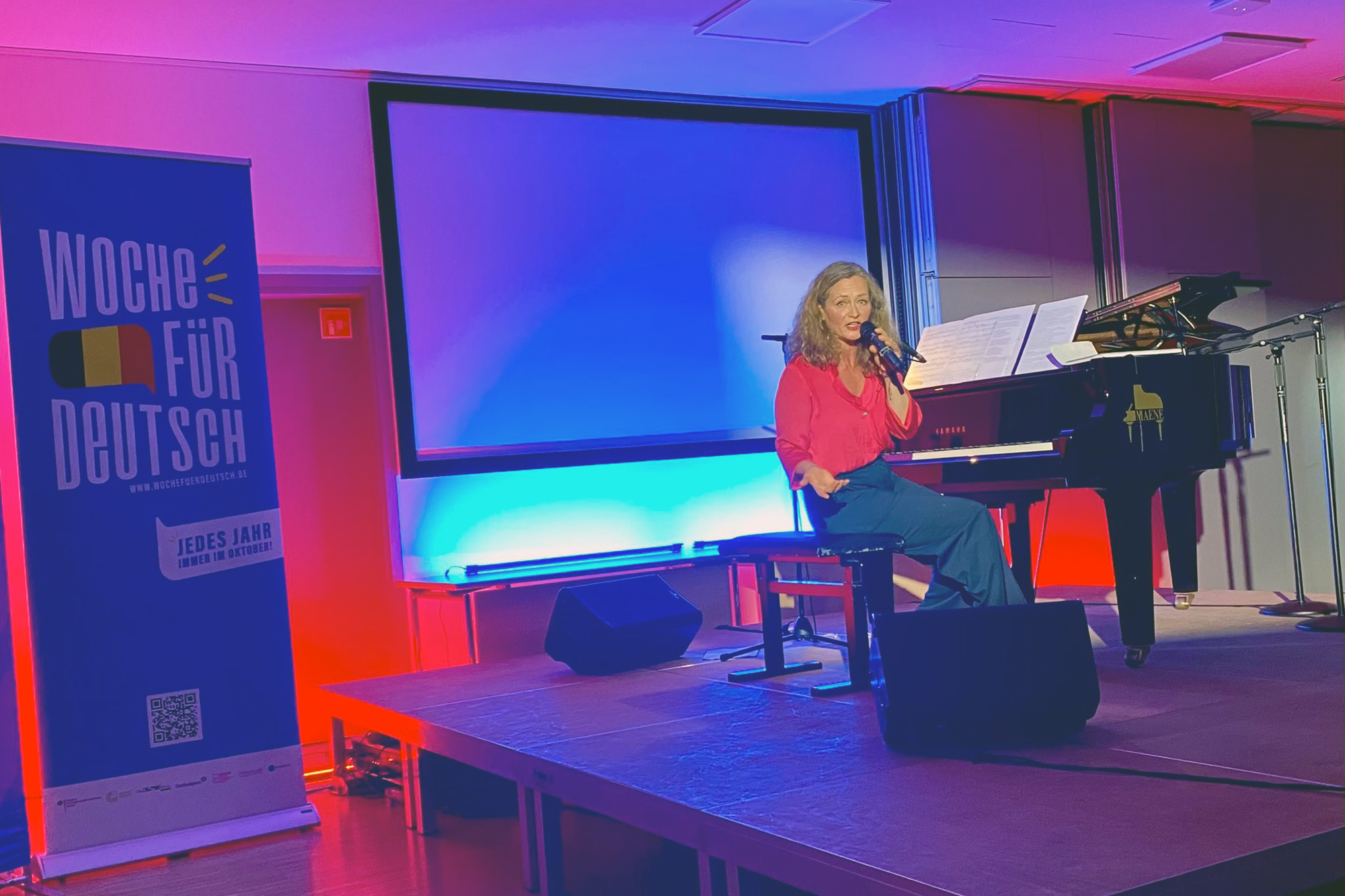 Dieses Jahr war es an der deutschen Klavierkabarettistin Anne Folger, das Publikum mit Musik und bissigem Humor zu erfreuen. Das Publikum ließ sich gerne darauf ein, forderte nicht nur eine, sondern sogar zwei Zugaben von der Künstlerin - und dann war die neue "Woche für Deutsch" eröffnet.