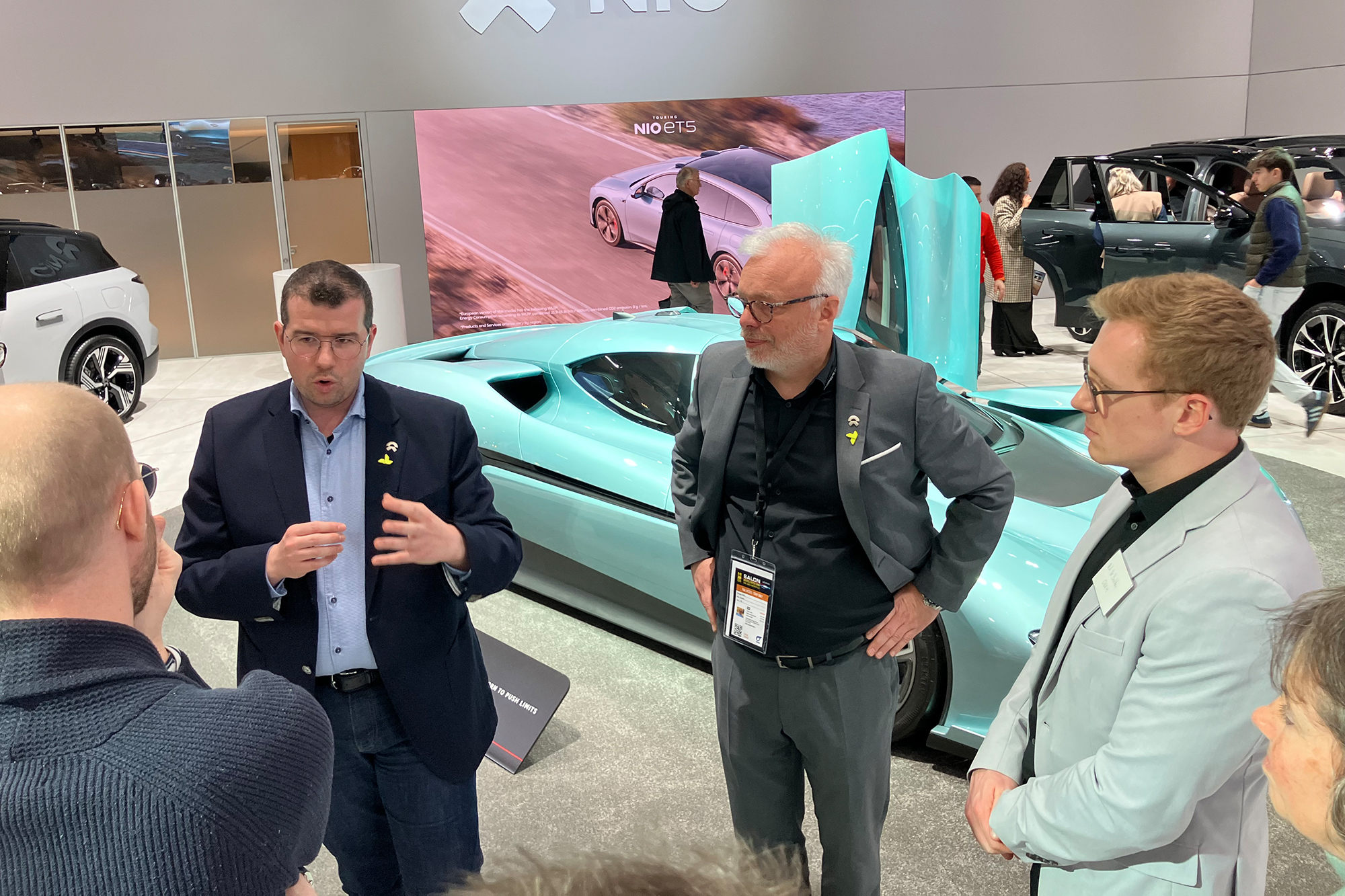 Direkt neben X Peng ist der Stand von Nio. Das ist eine andere chinesische Marke, die gerade Markteintritt in Belgien feiert. Was es hier an umweltfreundlicher Neuentwicklung gibt, erklärt der Ostbelgier Pierre Corman, der Business Development Manager von Nio: "Zum einen sind unsere Fahrzeuge 'swapable'. Das heißt, dass unsere Fahrzeuge die Batterie neben dem Schnellladen auch wechseln. Dadurch ermöglichen wir eine konstante und schonende Batterienutzung. Außerdem findet man bei unseren Fahrzeugen sowohl außen als auch innen überall recycelte Materialien."