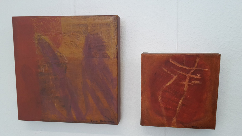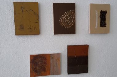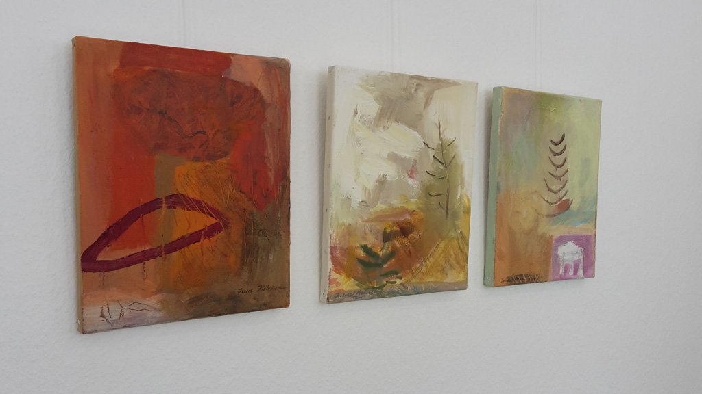 Wie das Verpackungsmaterial oder die Streichholzschächtelchen, auf denen die Künstlerin ihre Miniaturen malt. Ganz abstrakt sind die Werke nicht, sie legt Wert darauf, dass Details aus der Natur zu erkennen sind - ein Blatt oder ein Ast etwa.