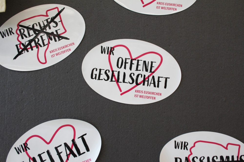 Im Rahmen der Initiative "NRW Weltoffen" ist nun eine neue Broschüre erschienen. Das Projekt heißt "Von wegen Rechts". Auf 36 Seiten wird besprochen, wie die Gesellschaft heute mit rechtsextremen Gedanken konfrontiert wird. Begleitet wird die Broschüre von einem Aktions-Set, das dazu einlädt, öffentlich für eine vielseitige und liberale Demokratie einzustehen. Dazu stellt die Initiative Aufkleber, Magnete und Postkarten zur Verfügung.