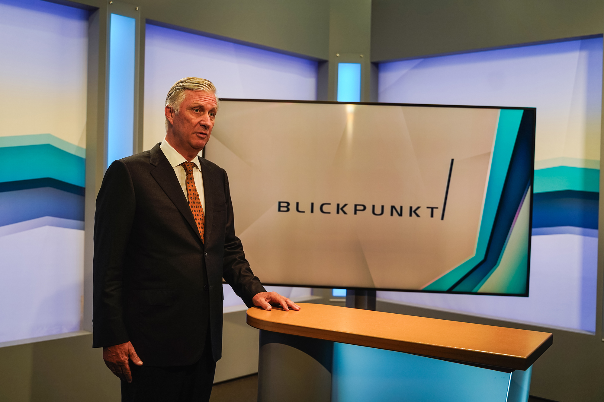 Gleich darauf tauchten König und Königin in den Alltag der BRF-Mitarbeiter ein. Im Blickpunkt-Studio begrüßte Moderatorin Julia Slot die Monarchen. Dabei trat König Philippe als Moderator auf und begrüßte die Blickpunkt-Zuschauer. Auch hinter die Kamera haben die Monarchen geschaut. In der BRF Fernsehregie kamen die Techniker zu Wort.