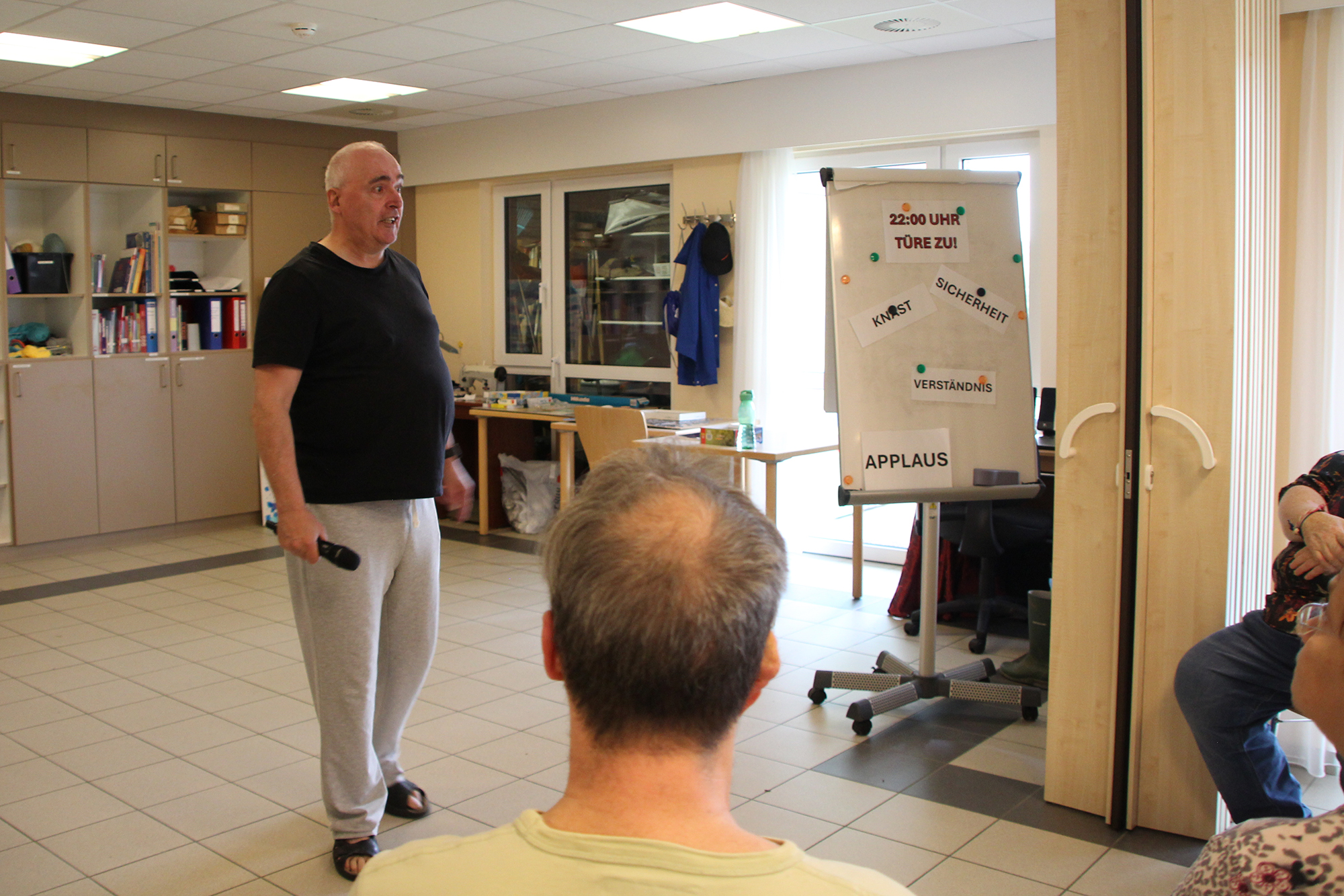 "Fragen, die mir Menschen oft stellen: Ob die Bewohner das Haus verlassen dürfen oder ob sie gefährlich sind. Dadurch, dass wir die Bewohner so eng begleiten, merken wir schnell, wenn es einem Bewohner schlecht geht oder er in eine Krise fällt. Dann können wir eingreifen. Sie sind auf jeden Fall nicht gefährlich", sagt Kalbusch.