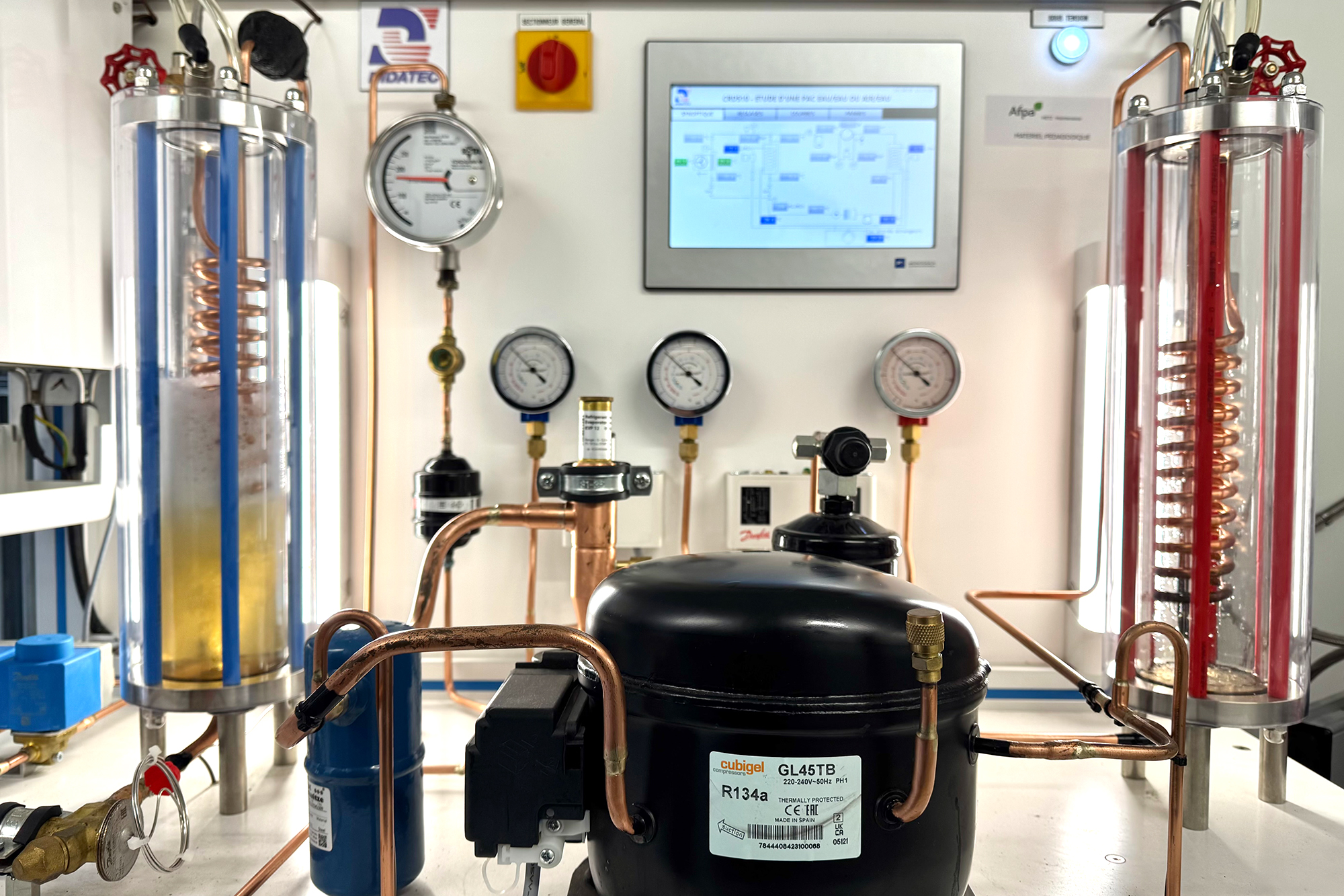 In der Branche herrscht Fachkräftemangel. Deshalb steht auf der Konferenz auch ein mobiler Ausbildungsraum. Das französische Ausbildungsinstitut AFPA hat den Container entwickelt. "Hier drin sind viele wichtige Bausteine der Wasserstoff-Technologie", erklärt Clément Maury von der AFPA. "Wir haben hier eine Elektrolysezelle, eine Brennstoffzelle und einen Tisch, wo die Gesetze der Thermodynamik veranschaulicht werden. Außerdem kann man auch alle relevanten Sicherheits- und Kontrollsysteme rund um Wasserstoff bedienen lernen."