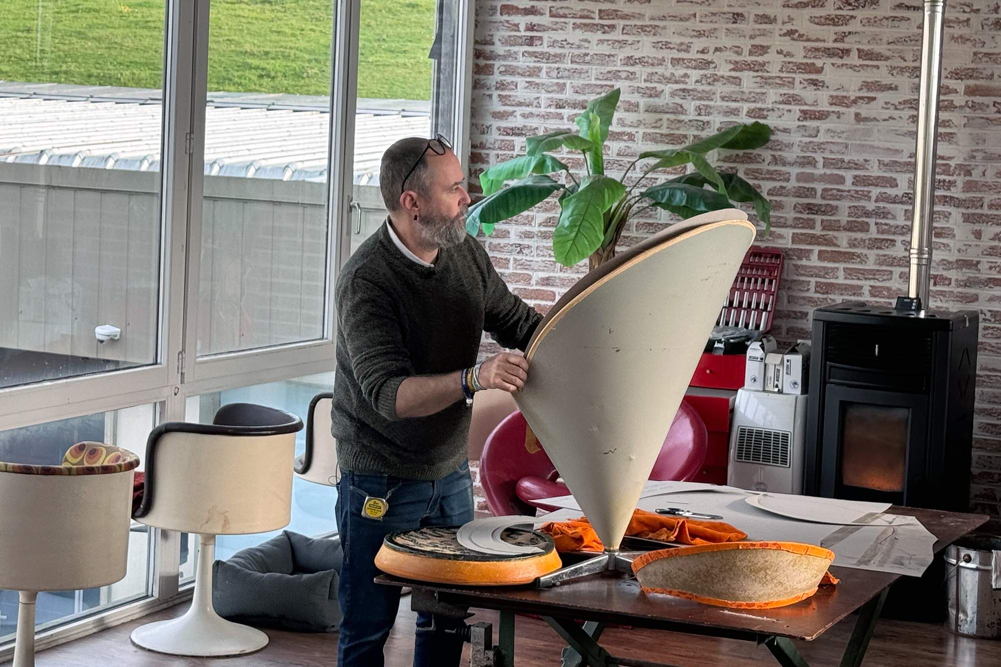 Alte Designer-Möbel von skandinavischen Designern haben es ihm angetan. In seinem Atelier stapeln sich teilweise die Möbelstücke, um die er sich noch kümmern möchte.