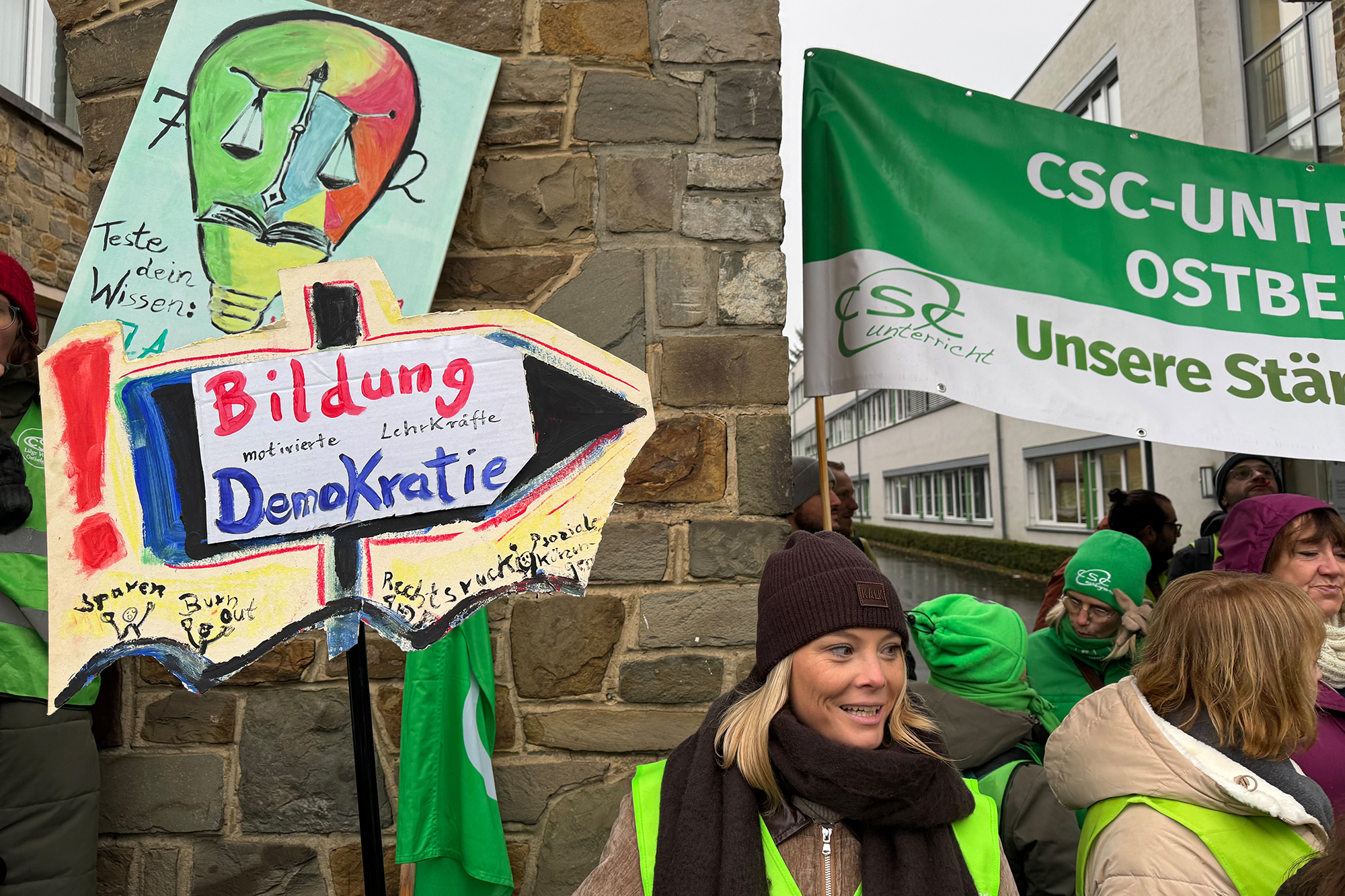 Wegen der Kundgebung war die Gospertstraße zwischen 10 und 11 Uhr für den Verkehr gesperrt. Besonders stark vertreten war die Lehrerschaft. Sie bemängelt vor allem die Sparmaßnahmen im Unterrichtswesen: Von der Kürzung der Jahresendprämie bis hin zu den Pensionskürzungen. Allgemein würde der öffentliche Dienst ausgehöhlt, sagte Viviane Leffin, CSC Gewerkschaftssekretärin öffentliche Dienste.