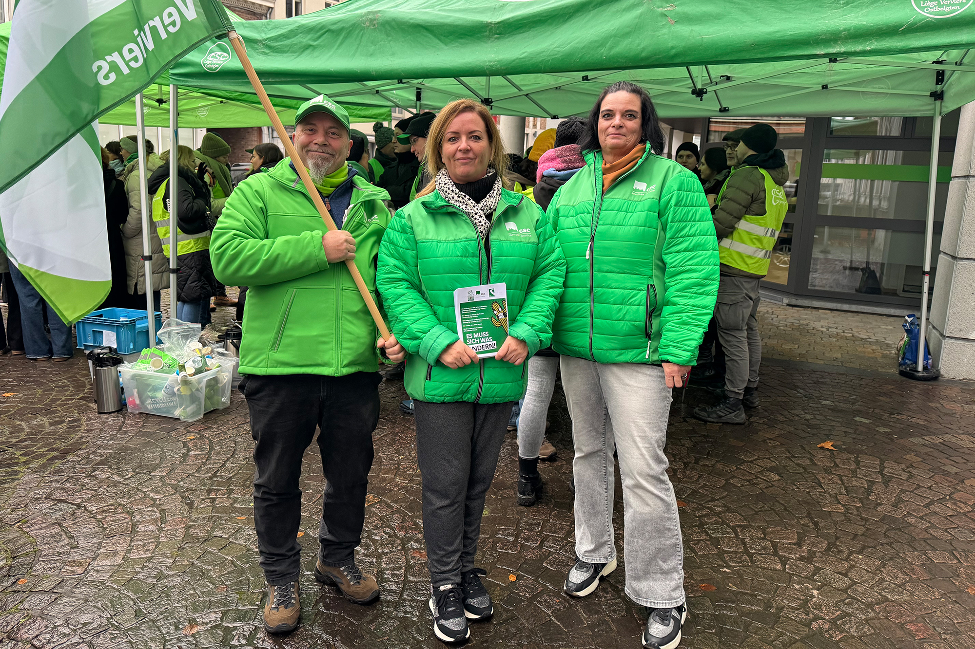Schon ab 8 Uhr waren Gewerkschaftsposten aus ganz Ostbelgien vor den drei großen Sekundarschulen präsent: Vor der Pater-Damian-Schule, vor dem Königlichen Athenäum und vor dem Robert-Schuman-Institut in Eupen. Anschließend zogen die Gewerkschaftsgruppen Richtung Eupener Gospertstraße, um vor dem Ministerium der Deutschsprachigen Gemeinschaft ihren Unmut über die Regierungspläne zu zeigen.
