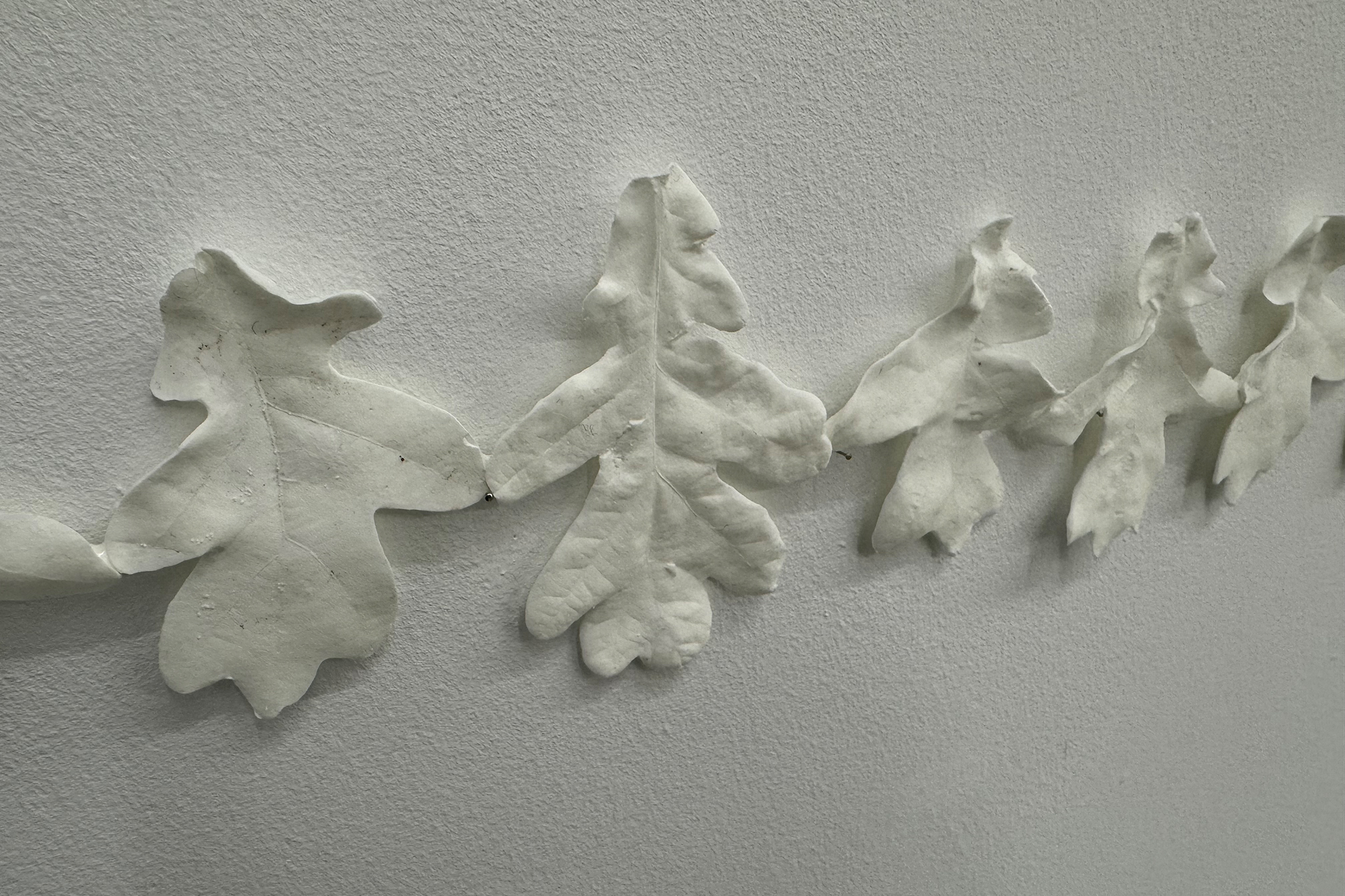 Die südkoreanische Bildhauerin Jungwoon Kim zeigt Werke aus der Reihe "Leaves", die während ihres dreimonatigen Aufenthalts in Eupen entstanden sind. Auf Spaziergängen gesammelte Blätter hat Kim in Silikon abgegossen, mit Harz ausgefüllt und so in zarte, fast menschlich wirkende Skulpturen verwandelt.