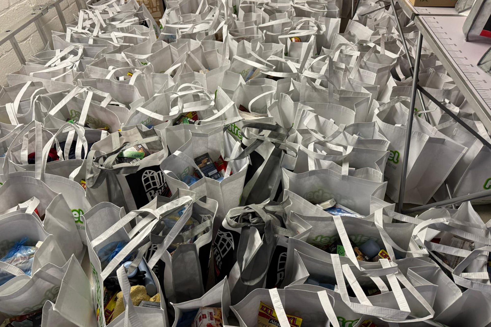 Henkes und seine Helfer verteilten dieses Jahr etwa 220 Tüten mit Geschenken von Sponsoren, unter anderem Mützen, Handschuhen, Süßigkeiten und Hygieneartikeln.