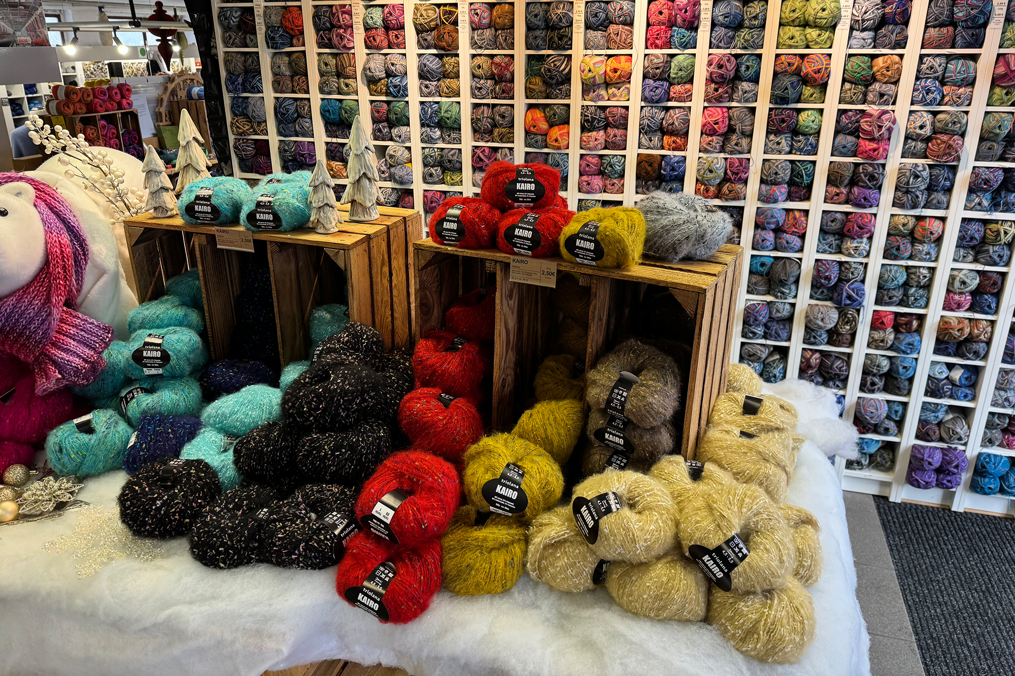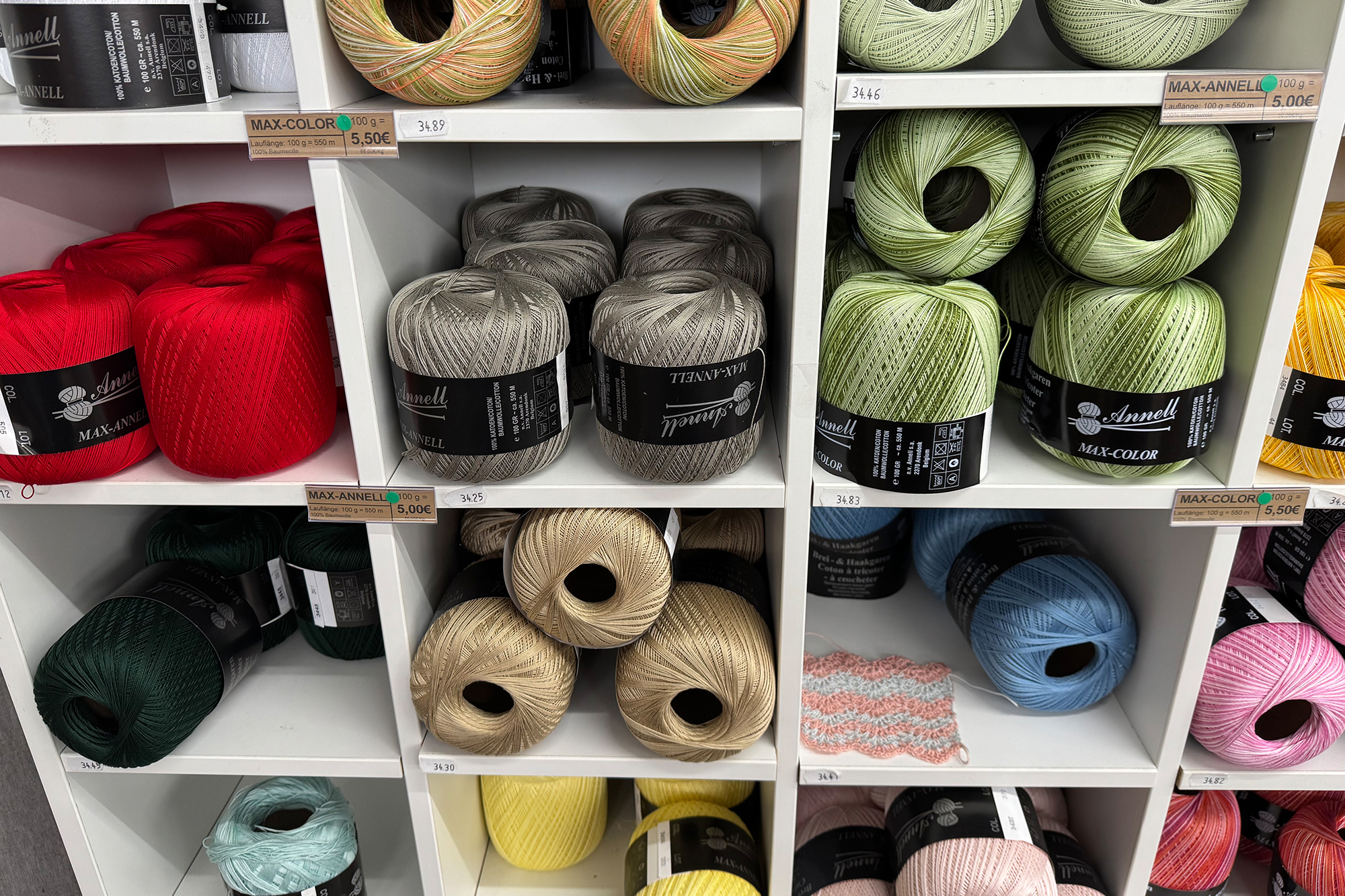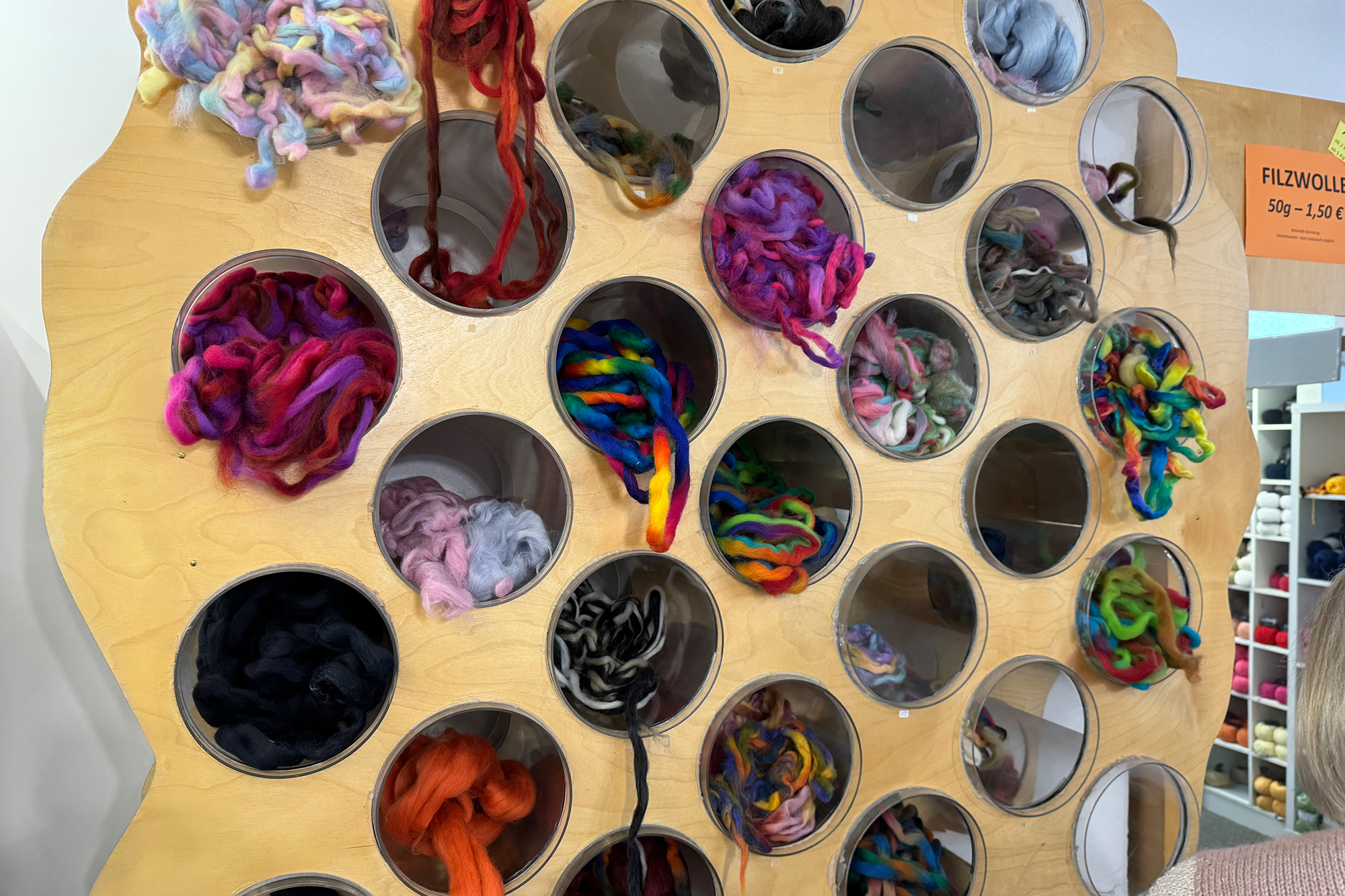 Mehrere hundert Garne führt er im Sortiment. Das Angebot multipliziert sich mit den verschiedenen Farben zu einem kunterbunten Wolluniversum.