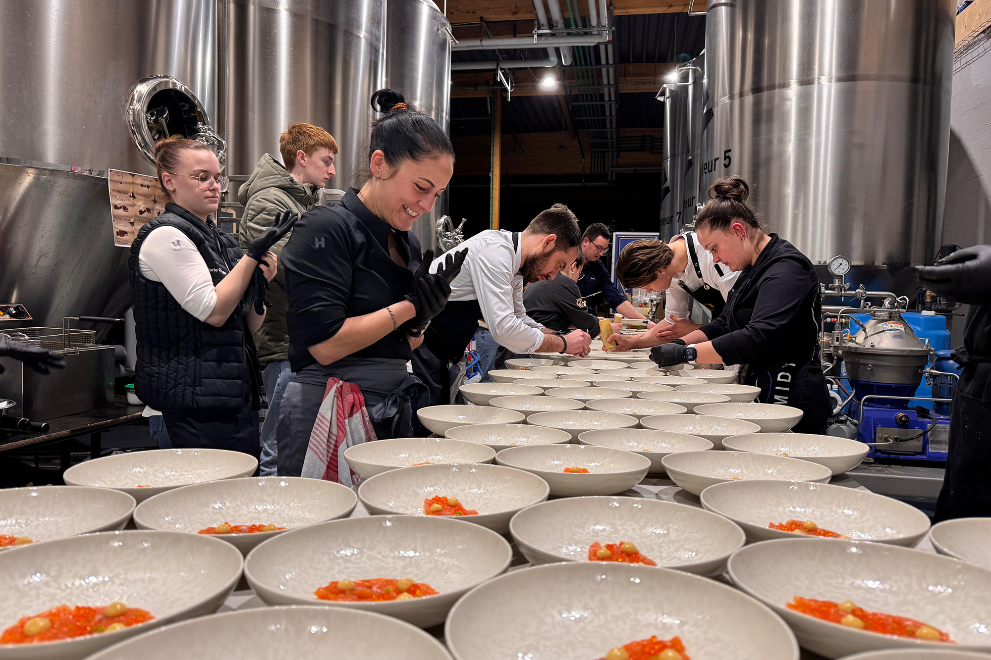 Zum ersten Mal gab es in diesem Jahr auch ein Benefiz-Galadinner. Dienstagabend waren 100 Gäste in die Brauerei Peak nach Sourbrodt gekommen. Für 150 Euro pro Person gab es ein gastronomisches Menü, gekocht von den Sterneköchen Gary Kirchens, Ricarda Grommes und Eric Pankert. Unterstützt wurden die Köche von dem Partyservice Schmidt und der Dabei VoG.