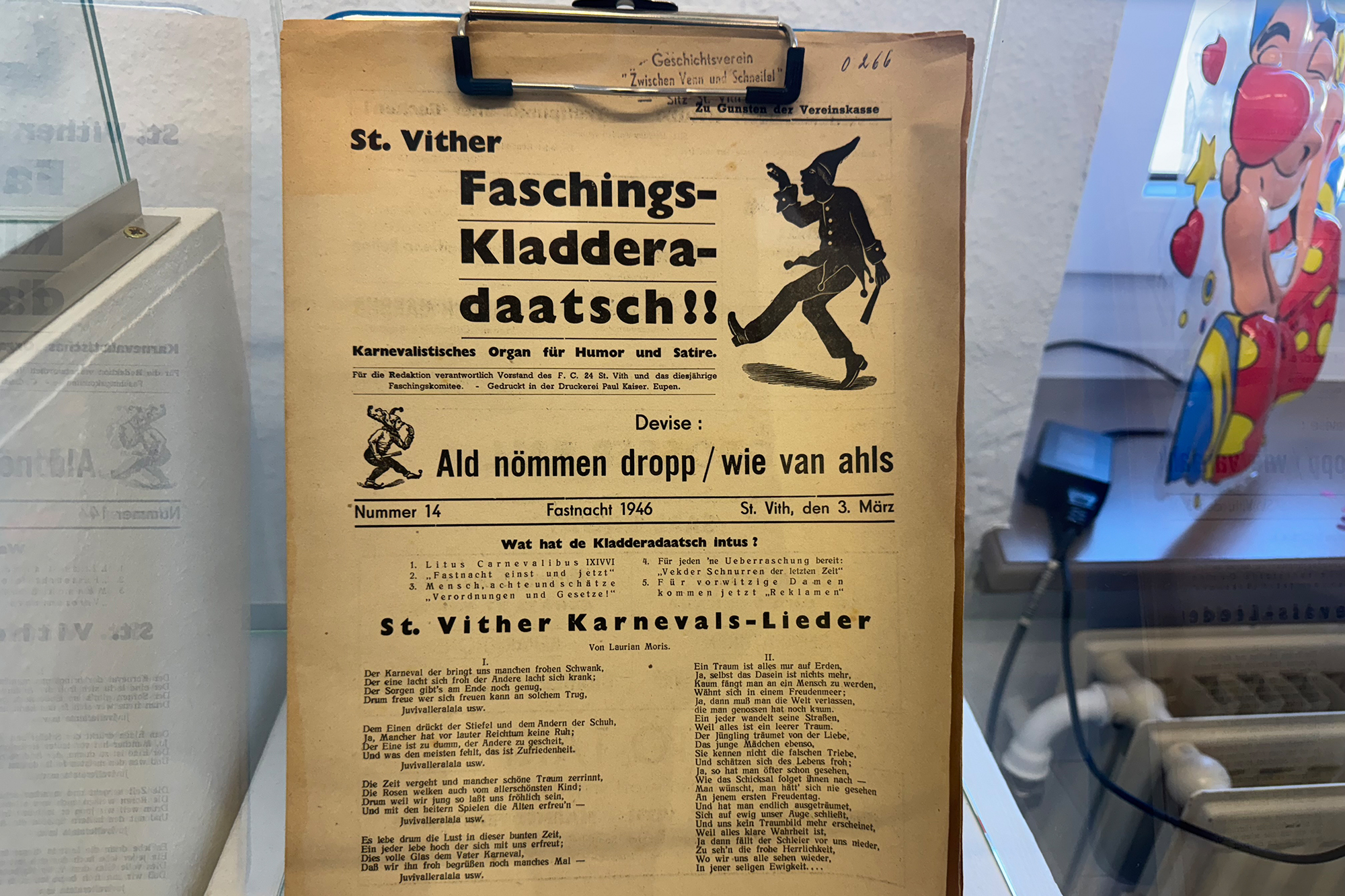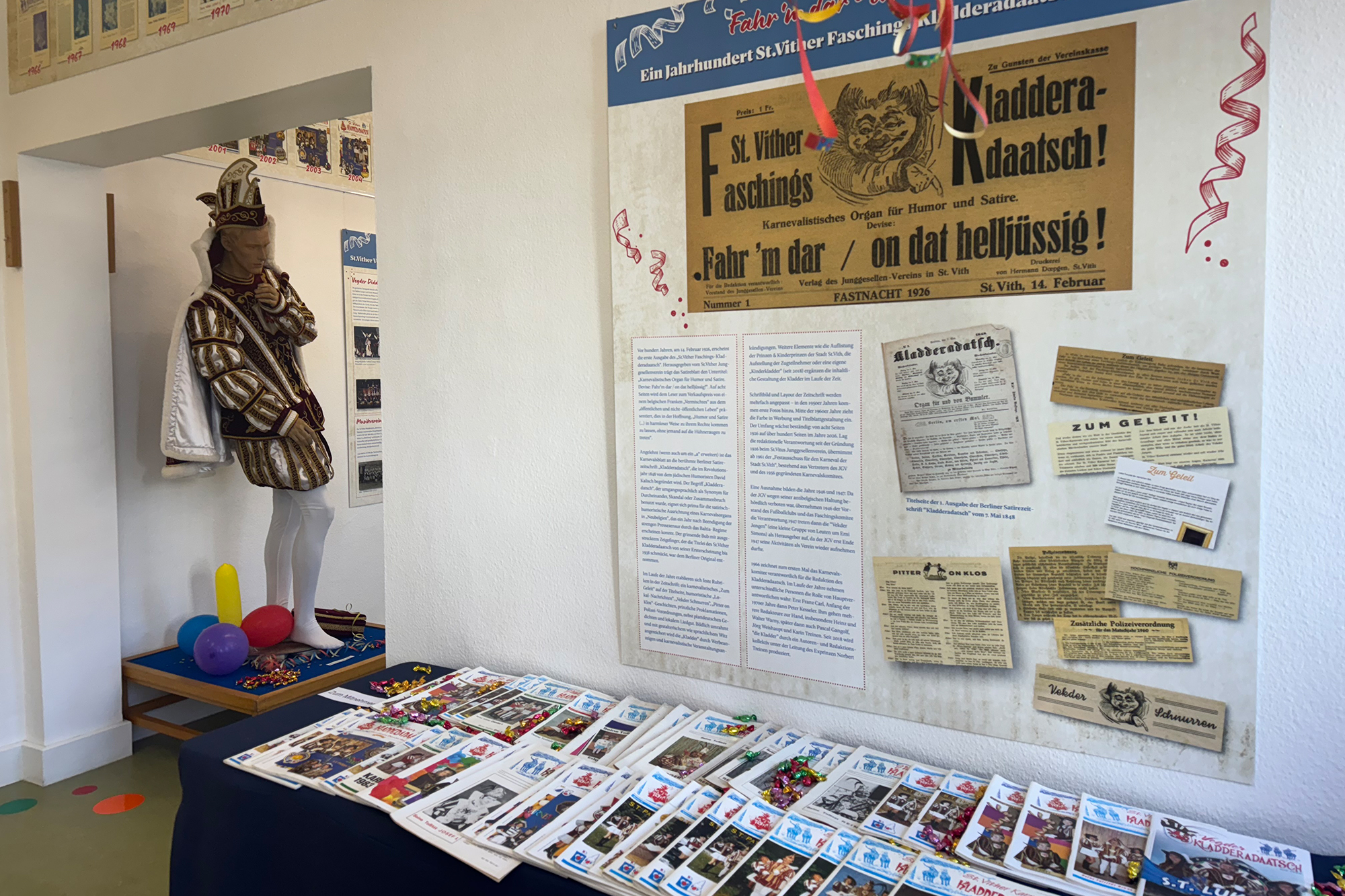 Im St. Vither ZVS-Museum ist am Wochenende eine Sonderausstellung eröffnet worden. Sie ist dem 100-jährigen Jubiläum der lokalen Karnevalszeitschrift "Kladderadaatsch" gewidmet. Unter dem Titel "Karneval im Wandel der Zeit" zeigt sie, wie sich Humor, Satire und Fastnachtstraditionen im Laufe eines Jahrhunderts verändert haben.