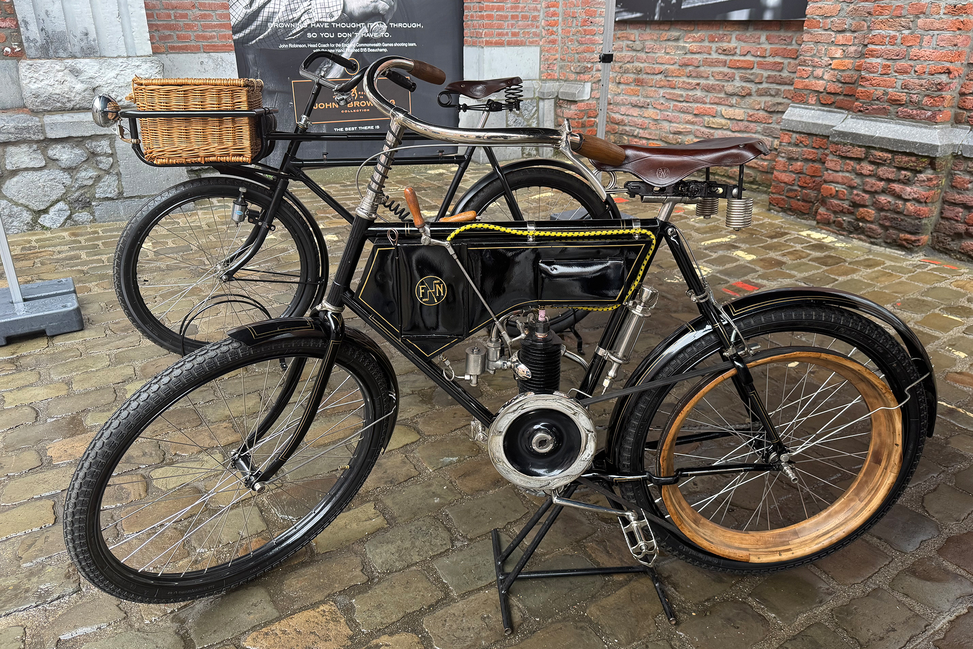 Zum Abschluss seines Besuchs besichtigte König Philippe auch historische Fahrzeuge aus der Unternehmenssammlung. Bis in die 1960er Jahre produzierte FN Herstal nicht nur Waffen, sondern auch Autos, Motorräder und Fahrräder.