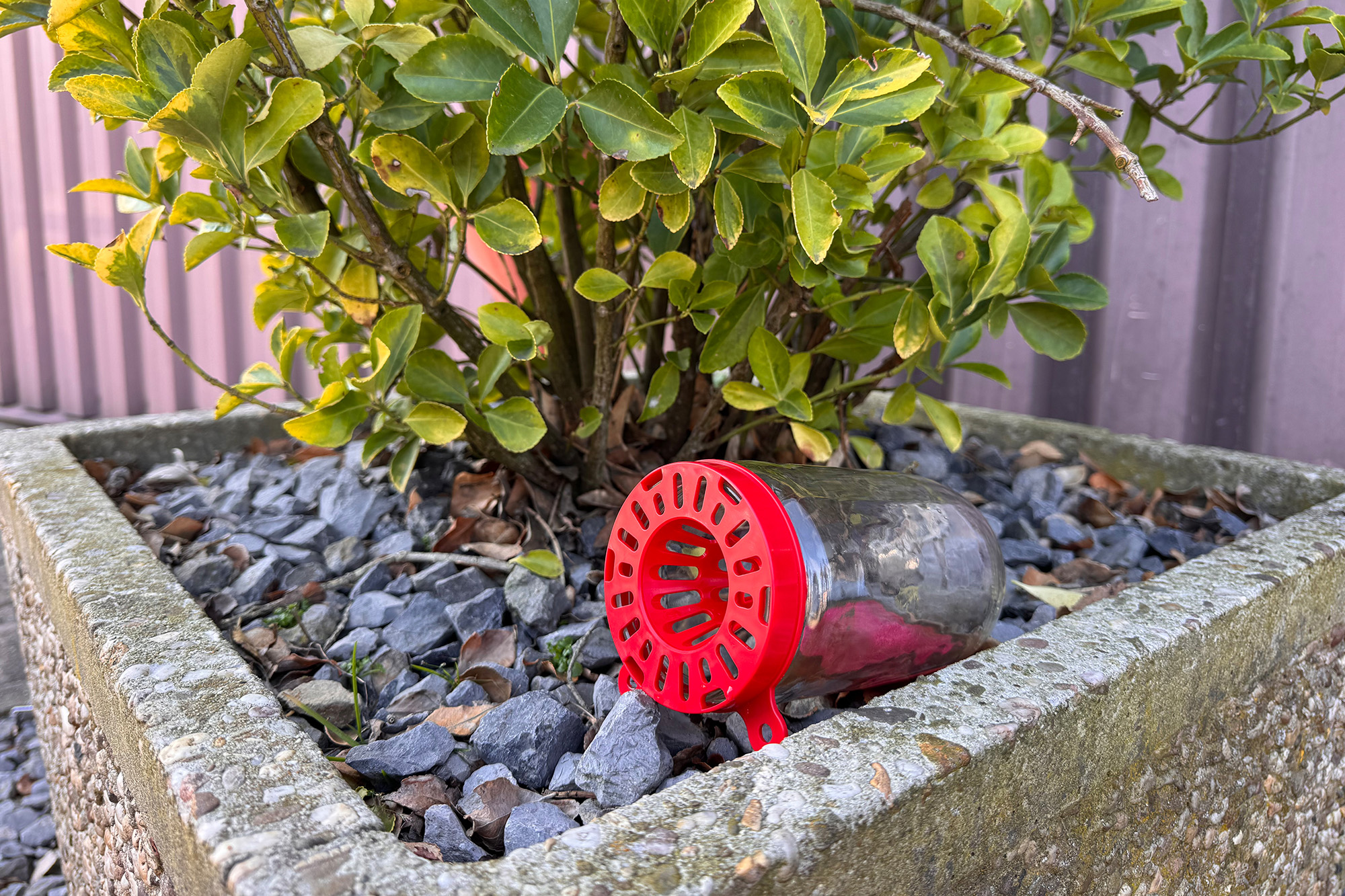 Die Falle sollte liegend an einem schattigen Platz im Garten aufgestellt werden, zum Beispiel an oder in einem Blumentopf. Alle zwei bis drei Tage sollte sie kontrolliert und bei Bedarf Flüssigkeit nachgefüllt werden.