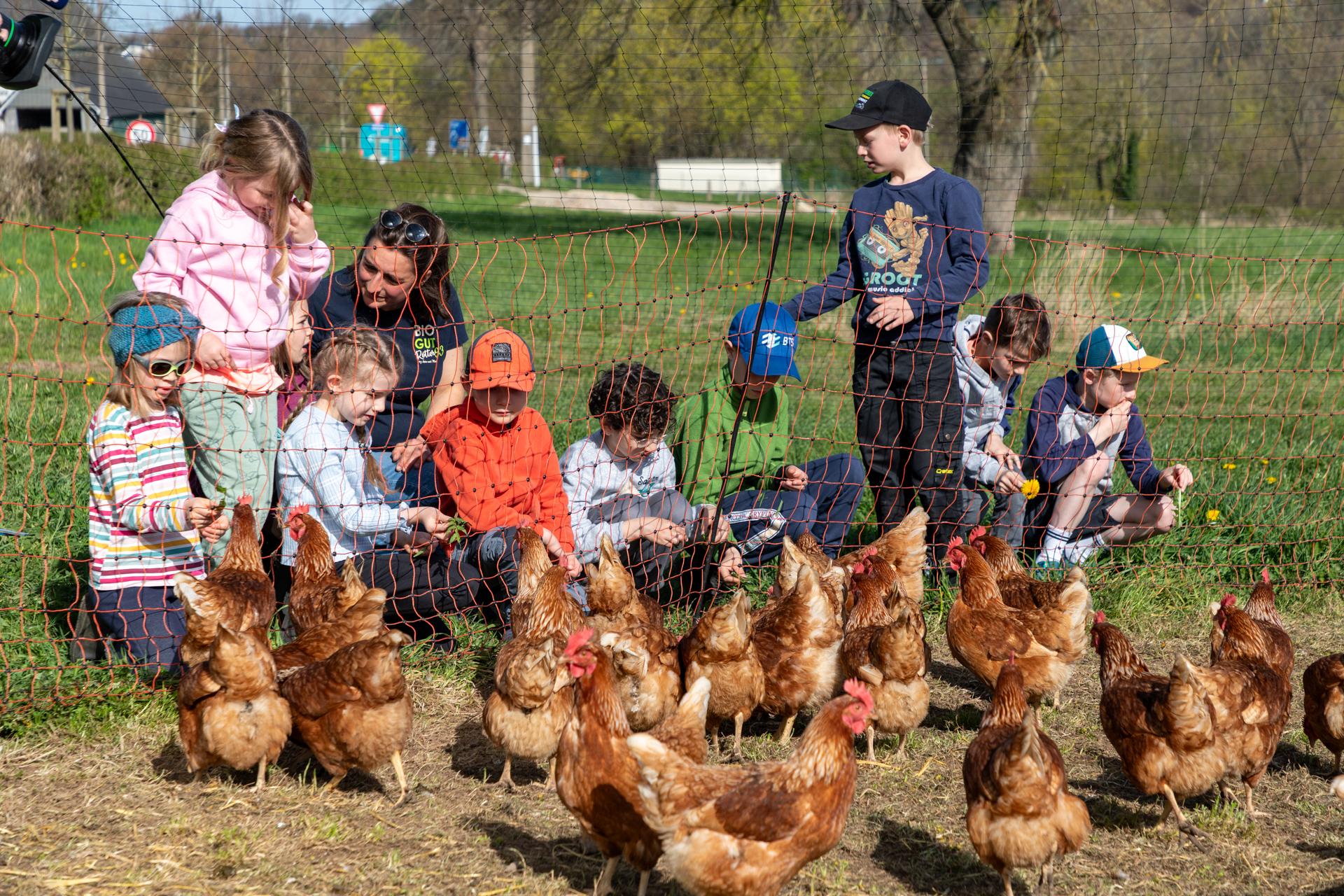 Mit allen Sinnen erleben die Kinder hier den Bauernhof. Anke Filbrich ist zertifizierte Bauernhofpädagogin. Die von der Großregion angebotene Weiterbildung nehmen inzwischen einige landwirtschaftliche Betriebe in Ostbelgien wahr. Für das Gut Rotter, das biologisch und extensiv wirtschaftet, ist die Bauernhofpädagogik ein zusätzliches wichtiges Standbein.