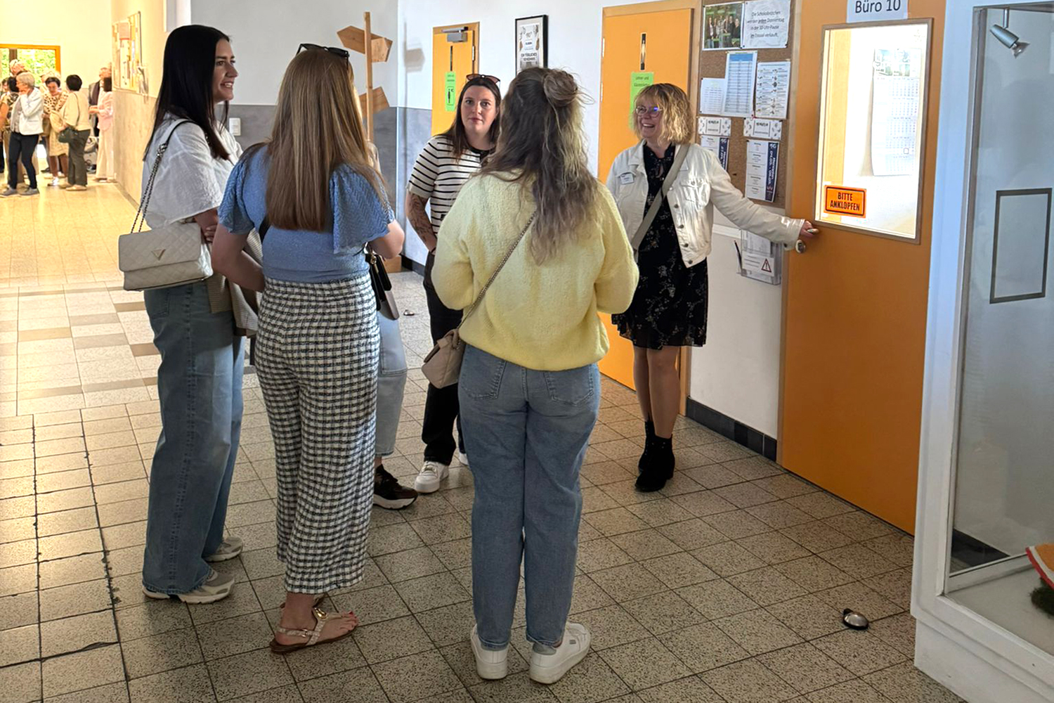 In der Schule schauten sich die Ehemaligen das Schulgebäude an und besuchten alte Klassenzimmer. Im Triangel wartete dann unter anderem eine große Fotoausstellung mit allen Abschlussklassen aus 75 Jahren MG auf die Absolventen.
