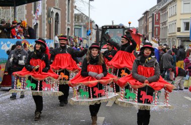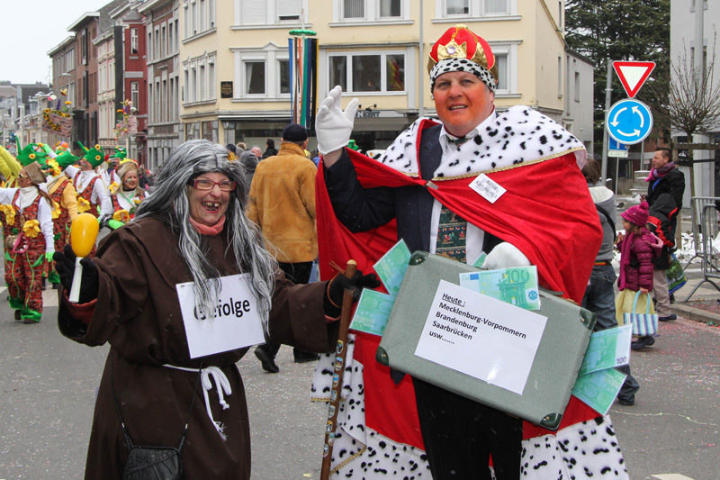 Bei eisigen Temperaturen hat der Eupener Straßenkarneval mit dem Rosenmontagsumzug seinen Höhepunkt erreicht. Am Eupener Rathaus nahm Prinz Andy I. den Zug ab. Aus dem fröhlichen Narren- wurde zum Ende ein Schneetreiben, was der Stimmung aber keinen Abbruch tat.