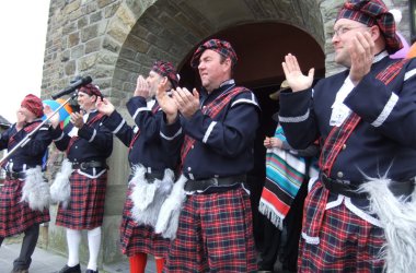Beim Sturm der Möhnen auf das Gemeindehaus in Amel sind die neue Hundesteuer und ein höherer Wasserpreis thematisiert worden. Das Gemeindekollegium um Bürgermeister Klaus Schumacher hatte sich in vorauseilender Bescheidenheit in einen Schottenrock gekleidet, um sich dem Ansturm aus den vielen Ortschaften der Großgemeinde zu stellen.