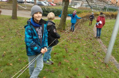 Die 5A der Pater-Damian-Primarschule hat am Donnerstag im Eupener Stadtpark einen Belgien-Rekord aufgestellt. Die Schüler haben das wohl bisher längste Loom-Band gehäkelt. Loom-Bänder werden aus bunten Gummiringen hergestellt und dienen meist als Armband oder Anhänger.