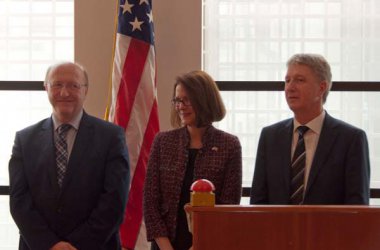 In der amerikanischen Botschaft in Brüssel sind am Dienstagmittag am rund vier Meter hohen Weihnachtsbaum aus Ostbelgien die Lichter angezündet worden. Schulkinder aus Mürrigen haben die Feierstunde mit US-Botschafterin Bauer verschönert und Weihnachtslieder auf Deutsch, Französisch und Englisch gesungen.