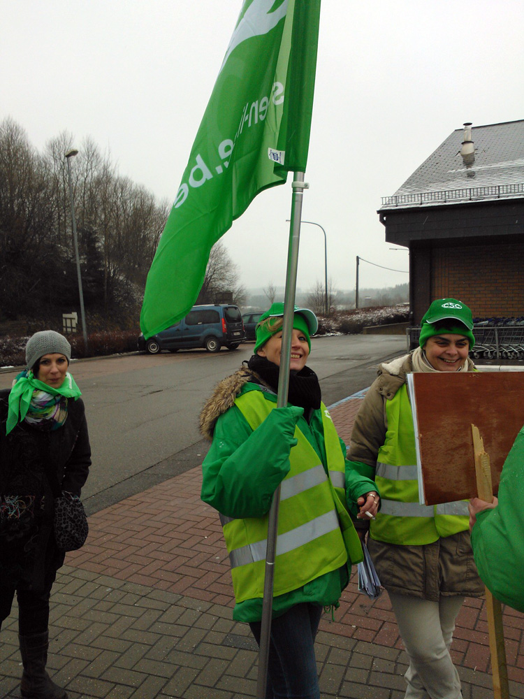 Am Vormittag zogen rund zwei Dutzend Gewerkschaftsmitglieder weiter in die Luxemburger Straße. Hier sperrten sie zeitweise die Zufahrt zum Kaufhaus AD Delhaize. Am Aldi lenkte die Filialleitung sofort ein und begrüßte die Gewerkschaftsvertreterinnen mit Kaffee. Am Lidl wies ein Schild an der Eingangstür darauf hin, dass der Markt wegen des Streiks geschlossen blieb.