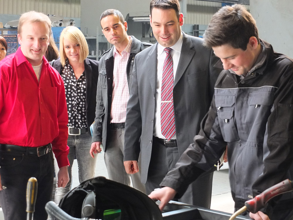 Ausbildungsminister Harald Mollers machte sich am Mittwoch in mehreren Betrieben ein Bild von der Aktion - so unter anderem bei der Stahl- und Apparatebau Huppertz AG am Steinerberg in St. Vith. Dort sind in dieser Woche zwei "Schnupperer" beschäftigt.