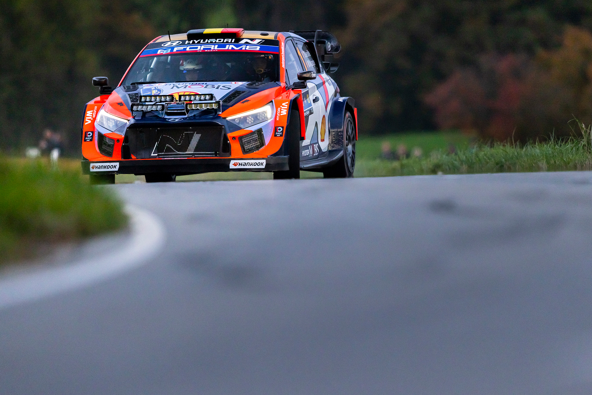 Zum Start in Tag zwei der Rallye Zentraleuropa sind die Hyundai-Fahrer die Schnellsten und rücken vor. Allerdings verlieren alle drei Zeit auf der langen WP 'Col de Jan'. Thierry Neuville fällt wieder zurück auf Platz acht. Das Toyota-Duo Sébastien Ogier und Kalle Rovanperä verteidigt Platz eins und zwei.
