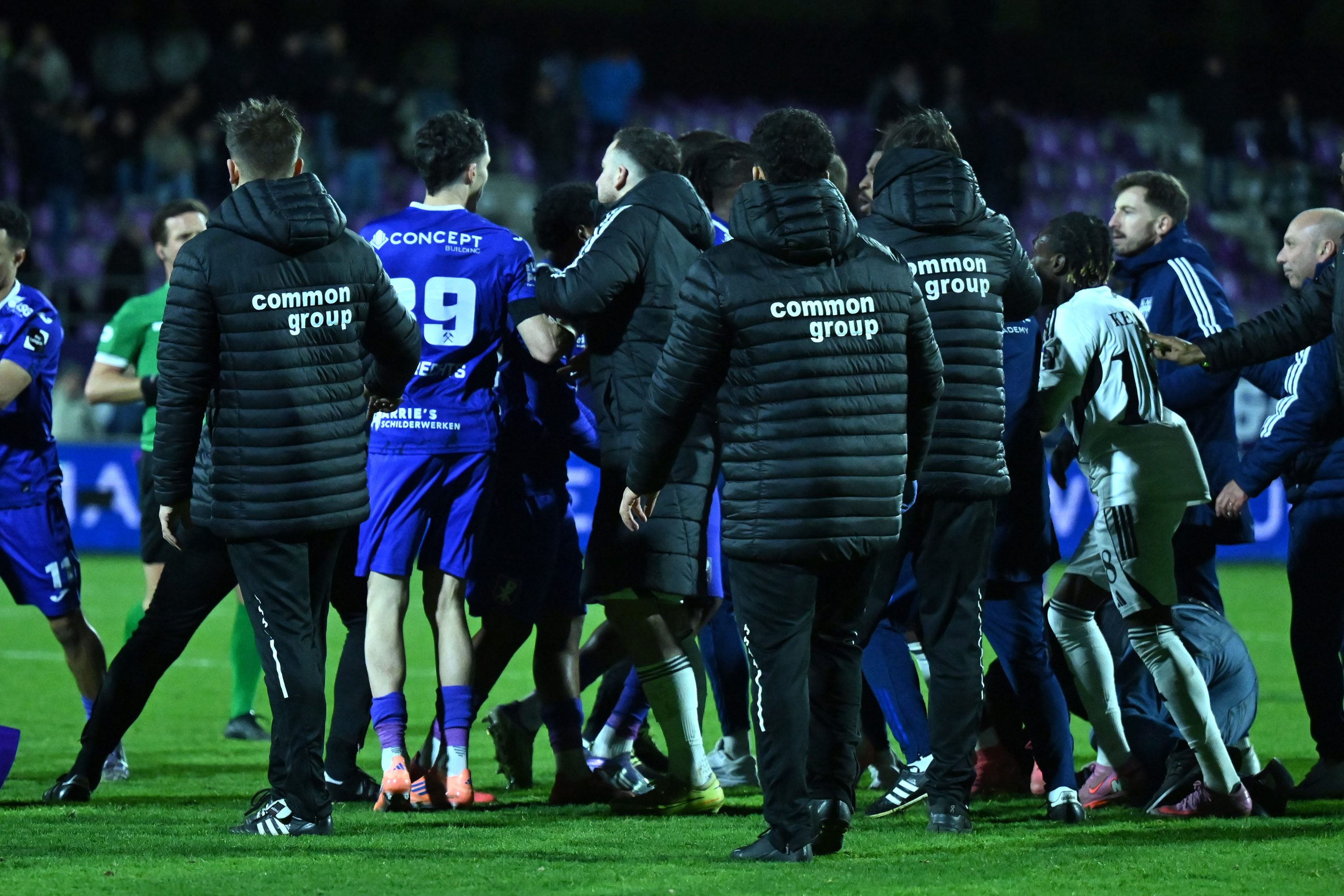 Nach dem Schlusspfiff erhitzten sich die Gemüter. Es kam zu Tumulten auf dem Rasen und im Kabinentrakt, in deren Verlauf Teammanager Michael Radermacher zu Boden ging und die Polizei einschreiten musste.