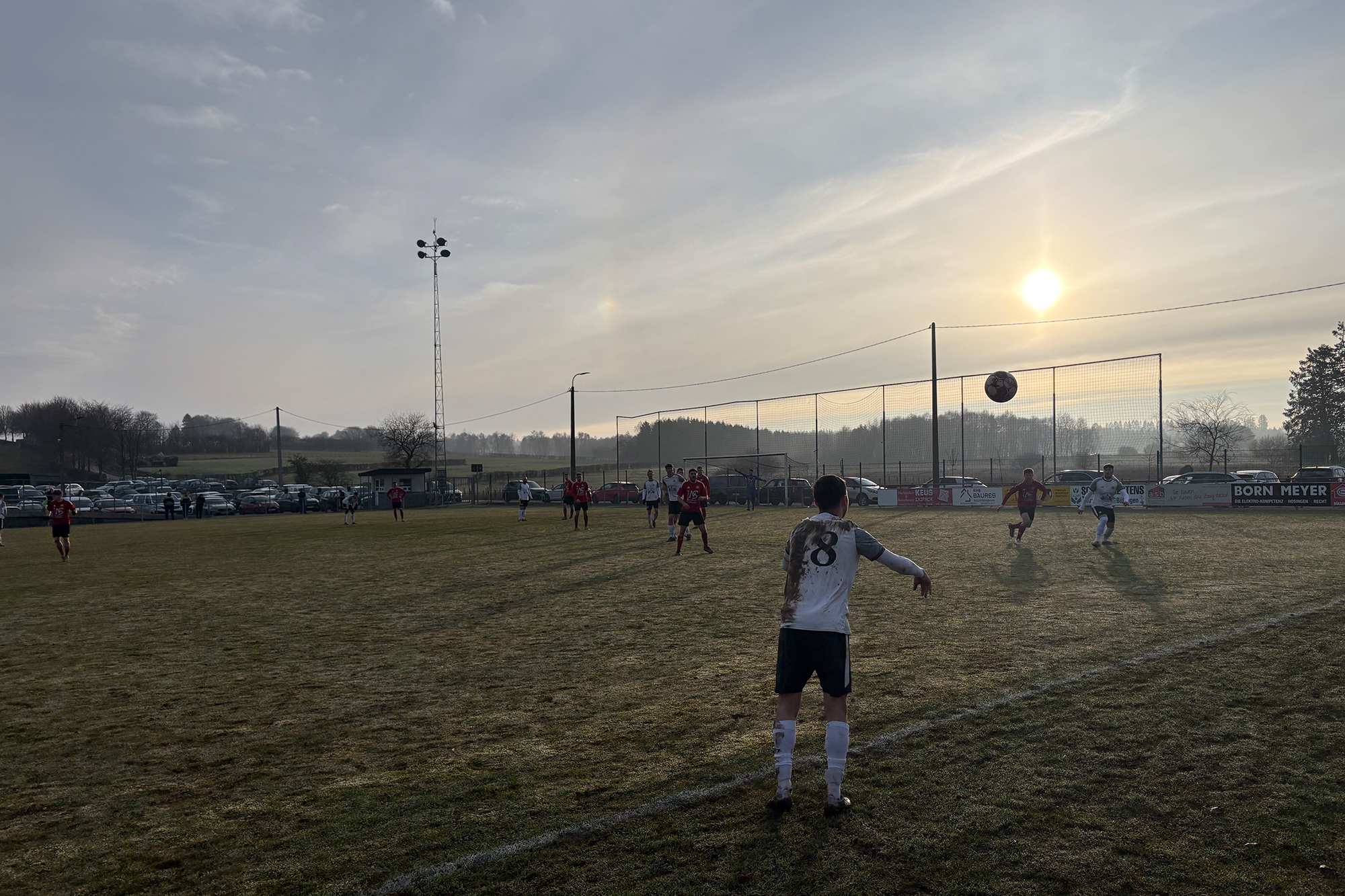 In den folgenden zwanzig Minuten lehnten sich die Gäste ein wenig zurück, wodurch Honsfeld gezielte Nadelstiche setzen konnte. Eine dieser wenigen Gelegenheiten nutzten sie prompt, als Michael Langohr nach einem langen Freistoß mit dem Kopf den Ball hinter die Linie beförderte und die Partie ausglich (1:1, 39. Min).