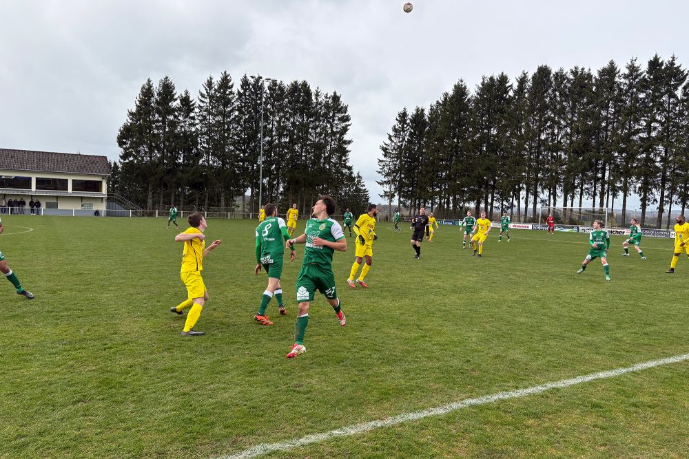 Die Gastgeber gingen als klarer Favorit in die Partie und grüßten mit fünf Punkten Abstand auf St. Vith von der Spitze. Dennoch lachten die Gäste aus Kelmis als Erste, denn nach nur einer Minute traf Gaetan Gladieux nach einer Flanke von Bradley Mobi ins eigene Tor.