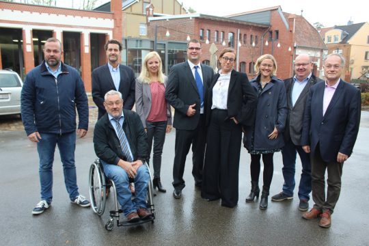 Die PFF-Politiker Alexander Miesen, Jenny Baltus-Möres und ein Vertreter der Abgeordneten Kattrin Jadin haben sich im Lager Elsenborn informiert. Auch Bütgenbachs Bürgermeister Emil Dannemark und Forstmeister René Dahmen wohnten dem Treffen bei.