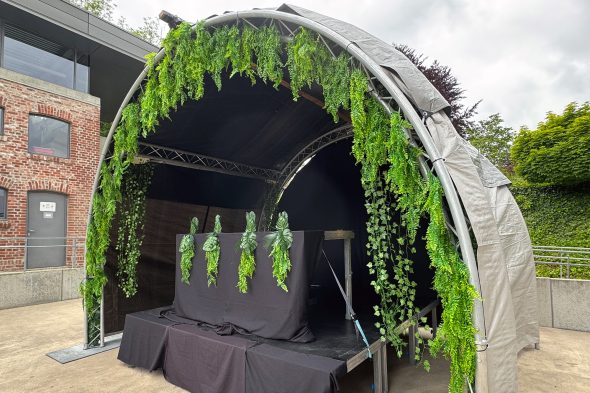 Während in der Eupener Innenstadt die Bühnen aufgebaut werden, wird im Hinterhof des Alten Schlachthofes schon überlegt, wie die Bühnen-Deko fertiggestellt wird und an ihren Platz kommt. Hier soll die Electro Stage am Samstagabend ganz im Zeichen von "Alice im Wunderland" das Publikum verzaubern - auf gleich zwei Bühnen. Dieses Jahr wieder komplett outdoor, erklärt Nicolas Schumacher. "Nach drei Jahren sind wir nochmal draußen. Das haben sich viele Zuschauer zurückgewünscht. Dieses Jahr sind wir in den Hinterhof des Alten Schlachthofes gezogen."